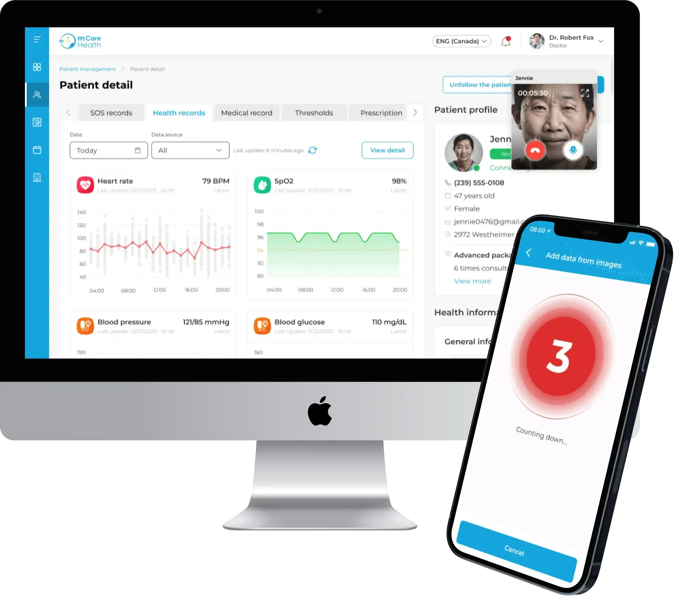 Connect to support center and monitor your health 24/7