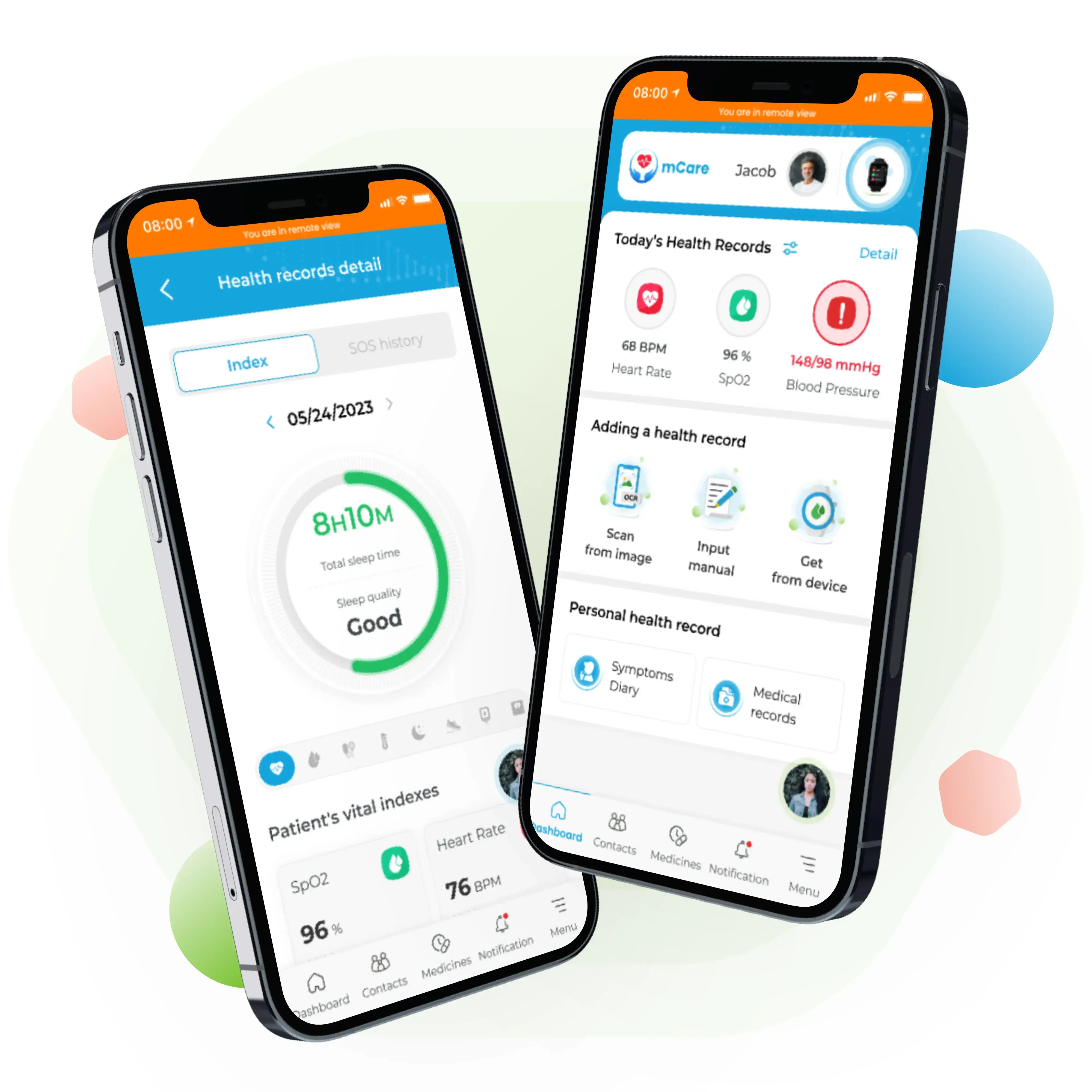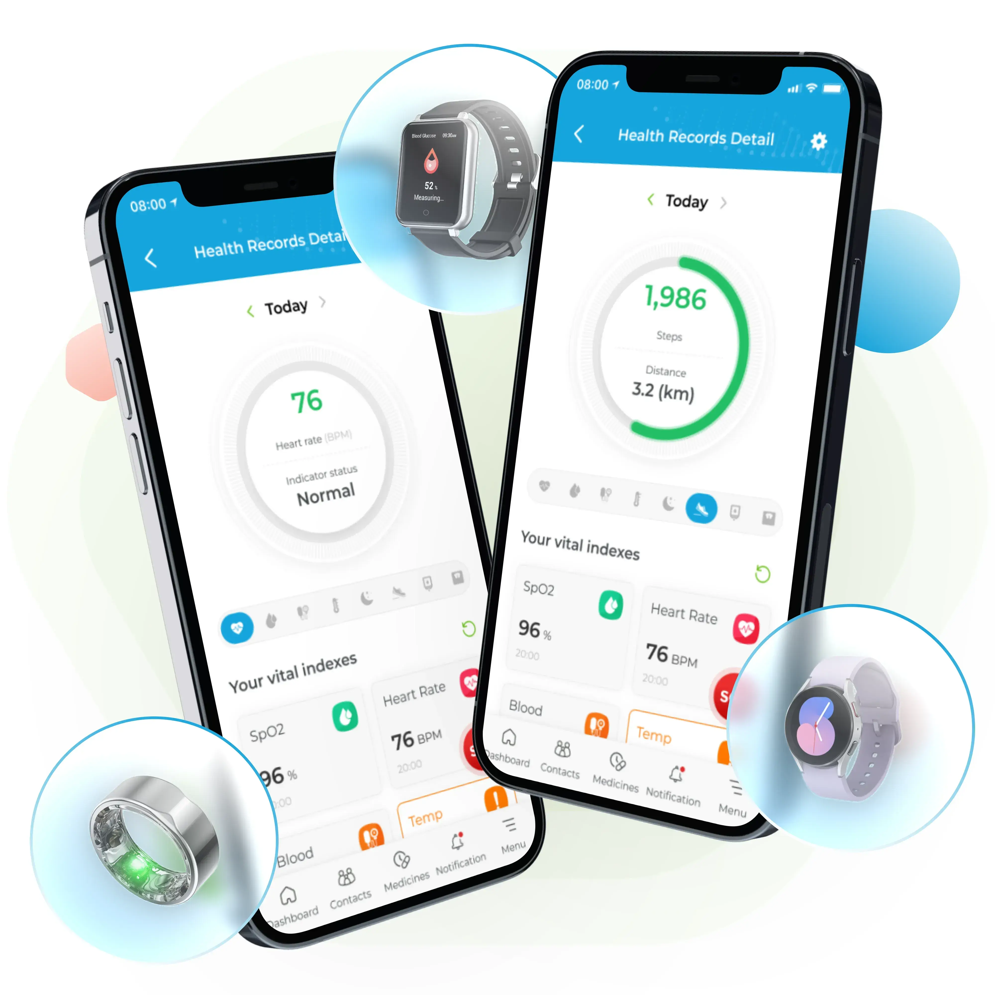 Monitor health data real-time via wearable, specialized devices and Homekit
